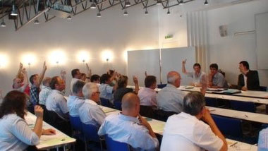 Die Mitglieder hören aufmerksam zu.....