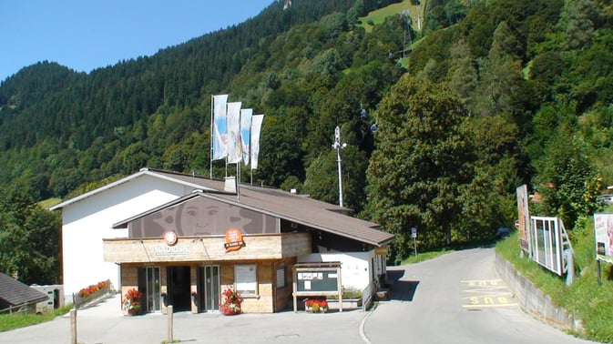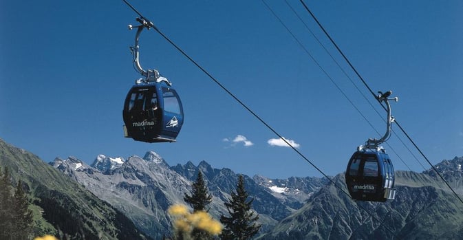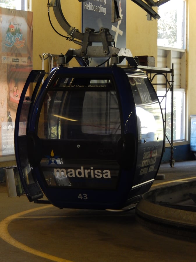 ... in einer (für die meisten!) gemütlichen 8-minütigen Fahrt hinauf auf Madrisa (1'900 m.ü.M.) hinauf