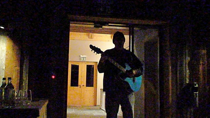 Zur Unterhaltung ist auch Bartli Valär im Madrisahof eingetrofen. Für's Fotografieren war der Ort bzw. die Beleuchtung, wie man sieht, nicht ideal