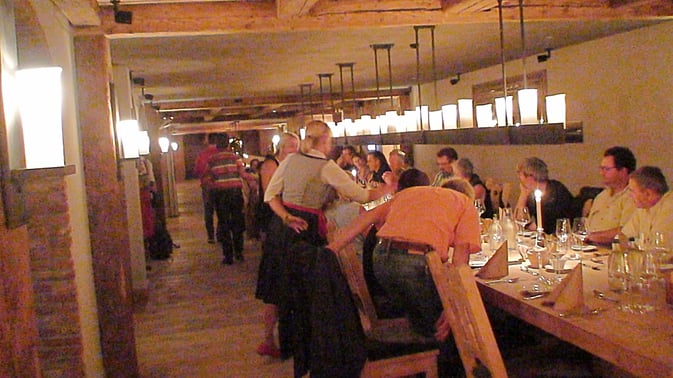 ... hinunter in den Hirsch-Gamskeller zum Nachtessen
