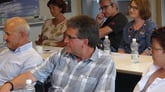 Die Mitglieder hören gespannt zu und der Referent animiert die Zuhörer zu einem „Testlauf“ mit dem Smartphone