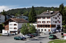 … Collina, welche im Dorfzentrum von Lenzerheide direkt neben einander stehen (die beiden Aufnahmen zeigen, dass es hier oben auch schönes Wetter geben könnte J)