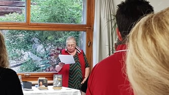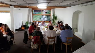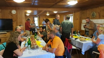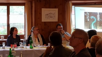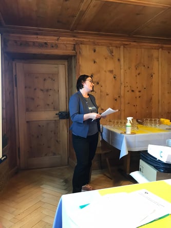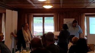 Zwischen dem Apéro und dem Nachtessen erhalten wir noch hohen Besuch von der ehemaligen Gemeindepräsidentin von Zillis und Präsidenten der IG Kleingemeinden GR Regula Götte.