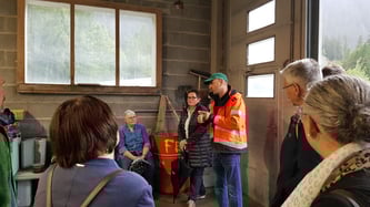 Die andere Gruppe besucht die Stizun da Latg, also die Käserei Andeer.