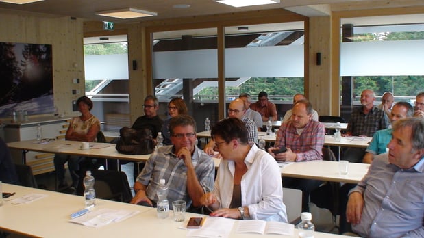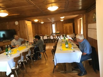Plötzlich hetzt der Präsident, denn das Programm geht weiter. Es verschieben sich alle mit dem Bus nach Andeer. Dort werden die Teilnehmer in zwei Gruppen aufgeteilt.