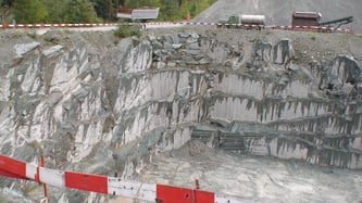 Eine Gruppe besichtigt den Steinbruch der Firma Battaglia Andeer Granit AG.