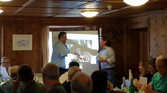 Nach dem Referent erhält Ursin Fetz unter Applaus ein kleines Präsent.